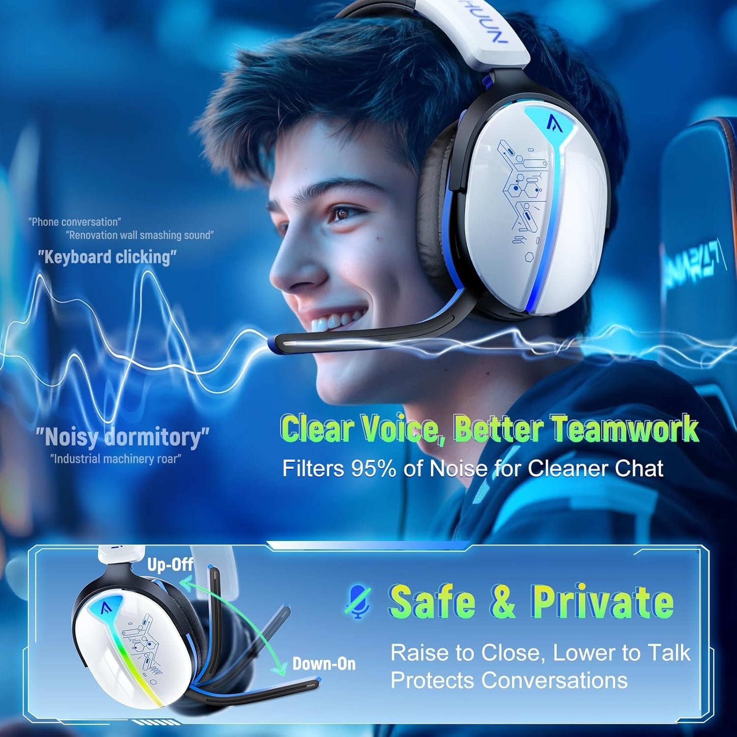 Long Battery Life: Up to 40 hours of playtime for uninterrupted gaming and entertainment. Noise-Cancelling Microphone ensures clear voice chat and communication in games or calls. Comfortable Over-Ear Design with soft cushioned earcups and adjustable headband for long sessions. Lightweight & Durable Build designed for hours of continuous wear without fatigue. Premium Styling with LED Lighting for a stylish gaming look