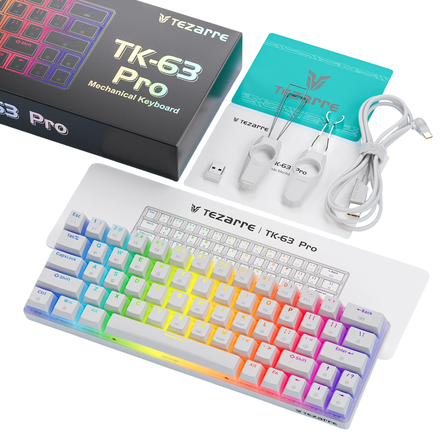 Compact 60% Layout: A sleek 63-key design that saves desk space and enhances portability without sacrificing essential functionality.
